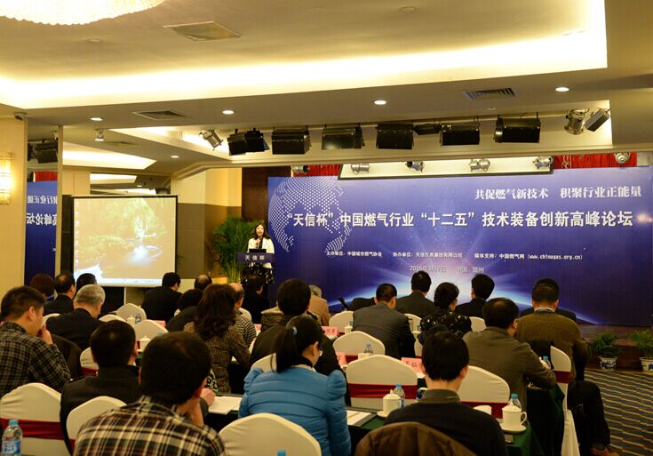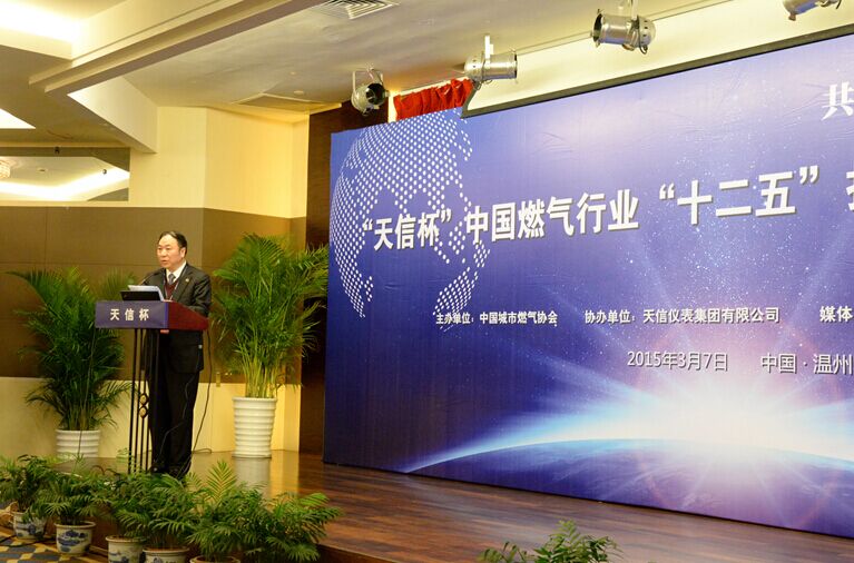由中國城市燃氣協(xié)會主辦、天信儀表集團有限公司協(xié)辦的“天信杯”中國燃氣行業(yè)“十二五”技術(shù)裝備創(chuàng)新高峰論壇和有獎?wù)魑幕顒影l(fā)布會,于2015年3月7日在溫州瑤溪大酒店隆重舉行。中國城市燃氣協(xié)會理事長王天錫、秘書長遲國敬,中國儀器儀表行業(yè)協(xié)會專職副理事長李躍光,浙江燃氣會秘書長王莉莉,天信儀表集團總裁范叔沙,以及來自業(yè)界的專家和領(lǐng)導100多人出席論壇。