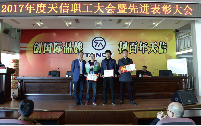 2月5日,2017年度天信職工大會暨先進表彰大會在公司二樓大型會議室召開,會議由副總裁張華主持,公司總裁范叔沙,副總裁葉朋、仇梁以及全體員工共360多人參加。本次會議既是一次總結(jié)表彰會,也是一個繼往開來的動員會。